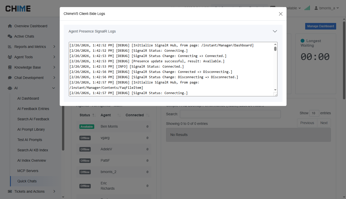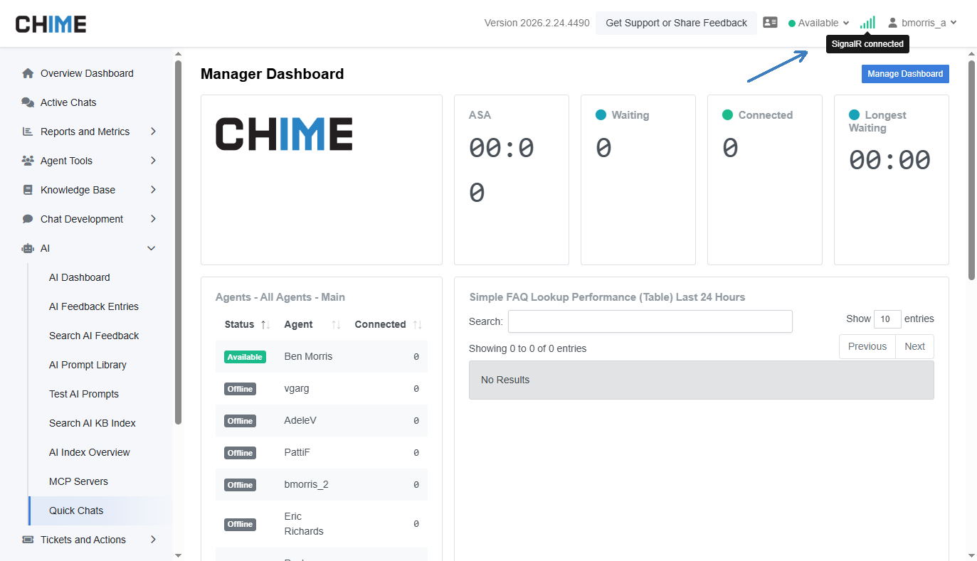We’ve improved FAQ file version reliability to ensure updated documents publish and display correctly, and added enhanced SignalR connection visibility in the dashboard for better real-time awareness and stability.