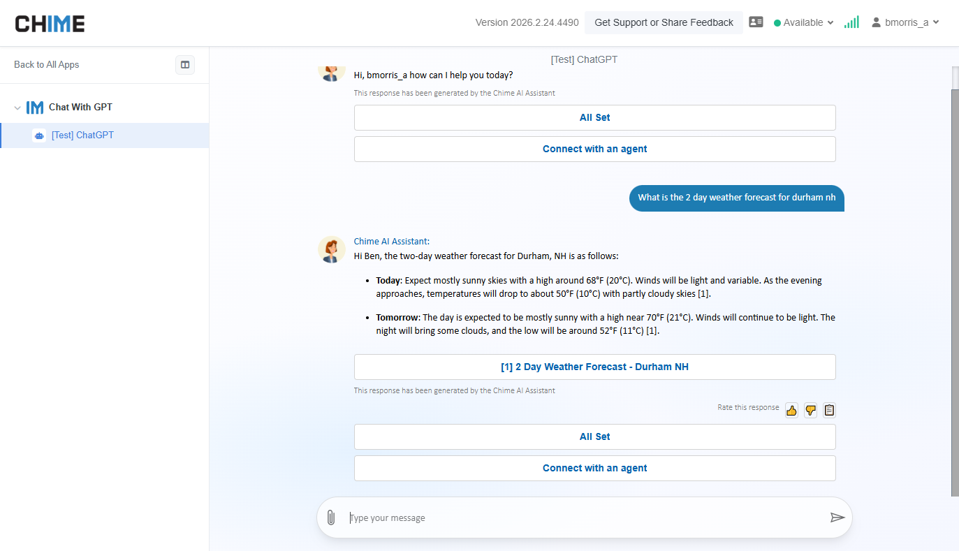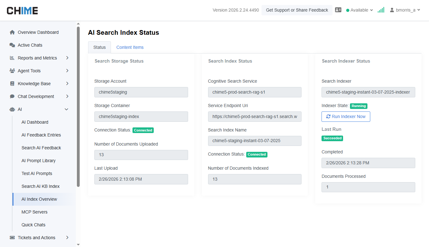 Chat With AI and confirm it was indexed and the contents display successfully