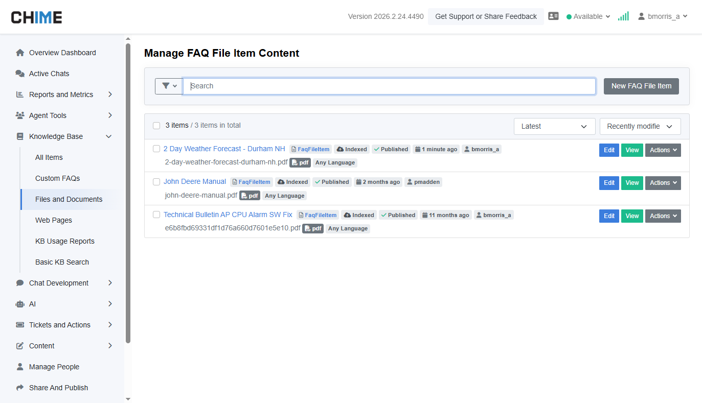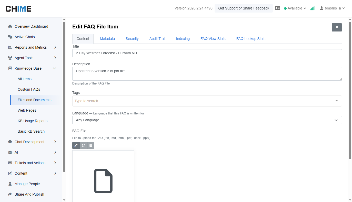 FAQ File Versioning Reliability Uploading a new version of an FAQ document now correctly replaces the previous file in the Media Library and updates search indexing as expected.